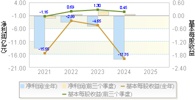 | 基本每股收益 | -0.2600 | -0.3000 | -1.7400 | 0.2800 | 0.2100 |