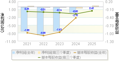 | 净利润 | -0.06 | -0.54 | -0.19 | -5.04 | -2.86 |