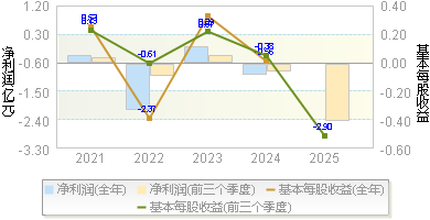 摊薄每股收益-0.7095-0.3110-0.1217-0.3324-0.2559