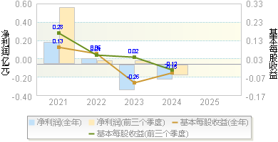 | 基本每股收益 | -0.0500 | -0.0400 | -0.2700 | -0.1900 | -0.1300 |