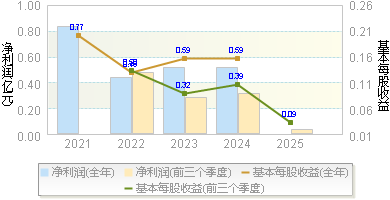 | 净利润 | 0.69 | 0.60 | 0.13 | 1.84 | 1.25 |
