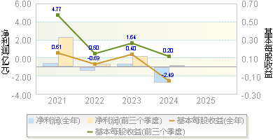 | 基本每股收益 | -0.0681 | 0.0060 | 0.0400 | 0.2095 | 0.1939 |