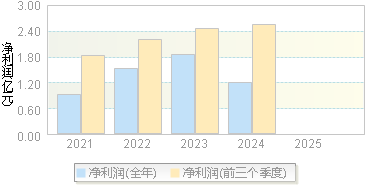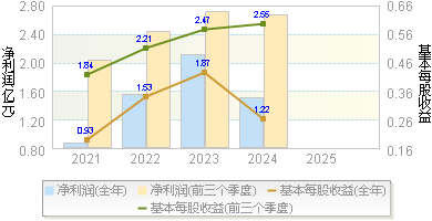 | 基本每股收益 | 1.0800 | 0.7000 | 2.2100 | 1.8700 | 1.2400 |