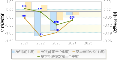 | 基本每股收益 | -0.0700 | -0.0100 | -0.2400 | -0.2100 | -0.1800 |