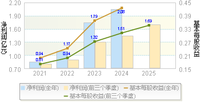 | 基本每股收益 | 0.9700 | 0.6200 | 0.2800 | 1.2800 | 0.8600 |