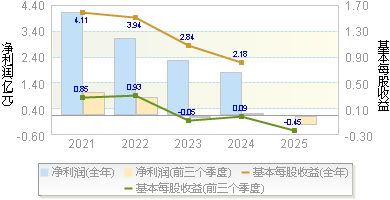 | 净利润 | -1.08 | -0.63 | -0.41 | 2.03 | -0.15 |