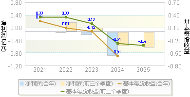 | 基本每股收益 | -0.6400 | -0.2700 | -0.1900 | -1.1000 | -0.5300 |
