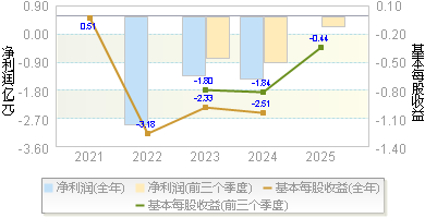 | 基本每股收益 | -0.9100 | -0.7900 | -0.3300 | -2.1700 | -1.4900 |