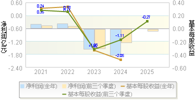 | 基本每股收益 | -0.6800 | -0.6400 | -0.4400 | -1.2000 | -0.7900 |