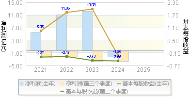 | 基本每股收益 | -1.1300 | -0.6100 | -2.0200 | -1.7200 | -1.2100 |