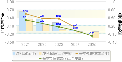 | 净利润 | -0.40 | -0.12 | 0.02 | 0.47 | 0.43 |