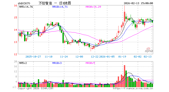 10月8日,万控智造开盘涨9.91%,报13.53元。