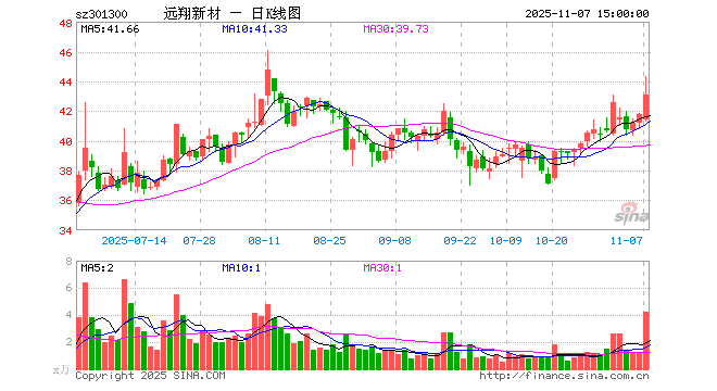 远翔新材收于18.240元,跌幅17.54%,成交金额0.3009亿元,换手率5.39%。