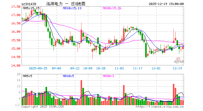 10月8日,泓淋电力开盘涨13.55%,报15.08元。