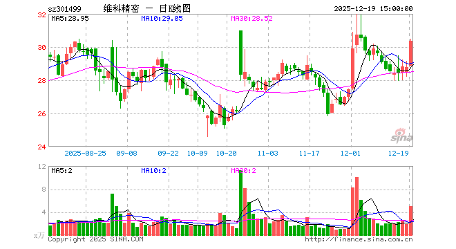 11月24日,维科精密开盘涨3.11%,报36.8元。所属汽车零部件行业,开盘跌幅0%。