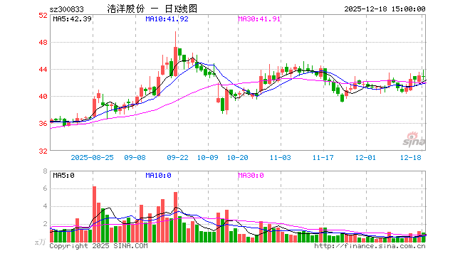 9月30日,浩洋股份开盘涨4.98%,报43元。
