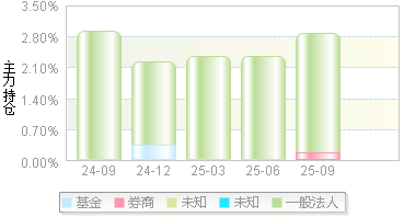 截至2025-09-30,共10家主力机构(券商1家,一般法人9家)持有万得凯,持仓量总计0.03亿股,占流通A股2.89。