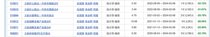 但他2021年及2022年分别接手的万家战略发展产业混合A、万家内需增长一年持有混合和万家匠心致远一年持有期混合A,在他2024年2月卸任时,任职回报率呈现25%-32%的亏损。