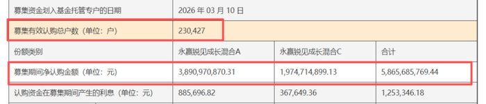 3月11日,永赢锐见成长混合(A类:026684.OF;C类:026685.OF)发布公告,该基金以23万户的认购规模,创下2022年以来主动权益类基金的新纪录。仅9天募资超58亿元,足见市场认购热情高涨。