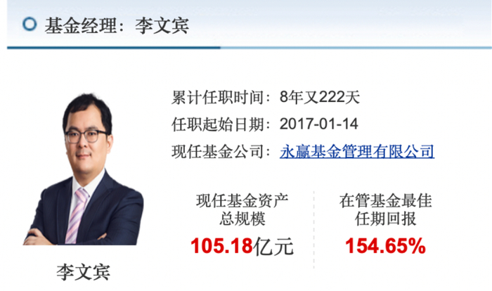李文宾拥有上海交大学士、复旦大学硕士背景,2010-15年分别在中银国际和华泰资管担任研究员,随后进入万家基金,于2017年初正式上任基金经理,后于2024年跳槽至永赢基金。