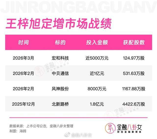 今年2月,王梓旭一口气入手了三只股:以约8000万元认购风神股份定增股票1167.88万股。耗资近亿元认购了中贝通信定增股票531.63万股。以1.05亿元竞拍下ST京蓝股票4924.38万股,占公司总股本的1.69%。
