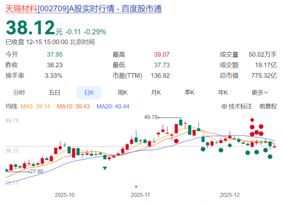 企业盈利提升预期下,天赐材料下半年股价大幅上涨,今年9月涨幅更是达到77%。到今年11月中旬,天赐材料最高价已经升至49.78元/股,年内最大涨幅超过153%。
