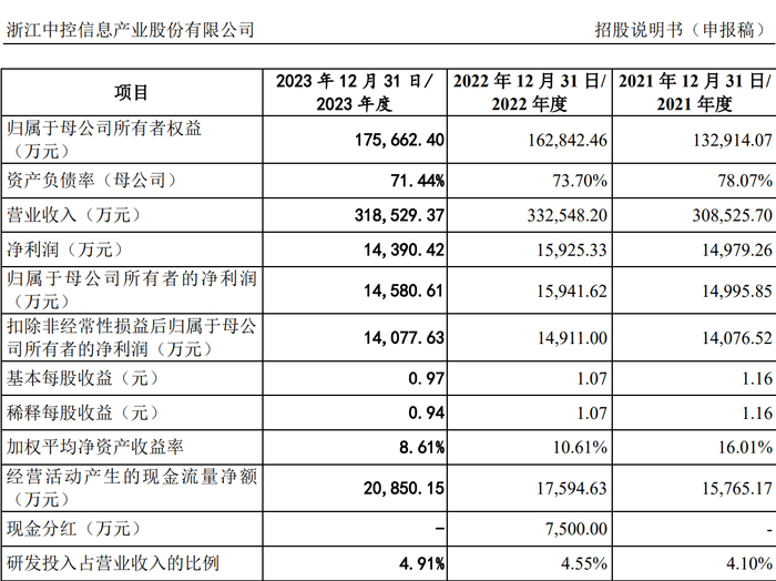 值得注意的是,本次万隆光电拟收购标的中控信息的体量,远超上市公司本身。据中控信息招股书,2021年至2023年,公司分别实现营收30.85亿元、33.25亿元、31.85亿元,营收接近万隆光电10倍;分别实现归母净利润1.50亿元、1.59亿元、1.46亿元,亦远超万隆光电。截至2023年末,中控信息净资产已达17.57亿元,而万隆光电市值在25亿元附近。