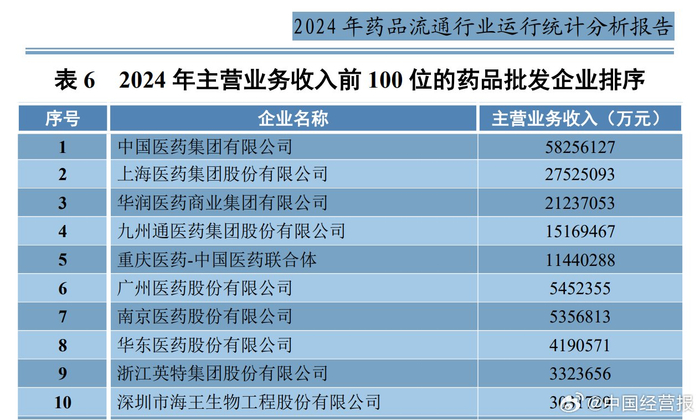 【最新百强医药批发和零售企业发布:国药集团和大参林位居榜首】2025年12月8日,商务部官网发布了《2024年药品流通行业运行统计分析报告》。2024年前10大医药批发企业分别是:国药集团、上海医药、华润医药、九州通、重庆医药—中国医药联合体、广州医药、南京医药、华东医药、英特集团、海王生物。
