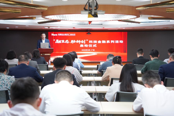 活动现场,光大银行广州分行发布了2026年科技金融行动方案,紧扣“与创业者同行、与企业家同步、与追梦人同道”三大服务场景,依托光大集团综合金融与产融协同优势,立足科技企业全生命周期,为广东省科创企业打造“股、贷、债、托、私”全生命周期接力式产品组合,全方位赋能,助力科创企业行稳致远、发展壮大,持续构建以“强生态、强服务、强产品、强行研、强数智”为支撑的“阳光科创”服务体系。