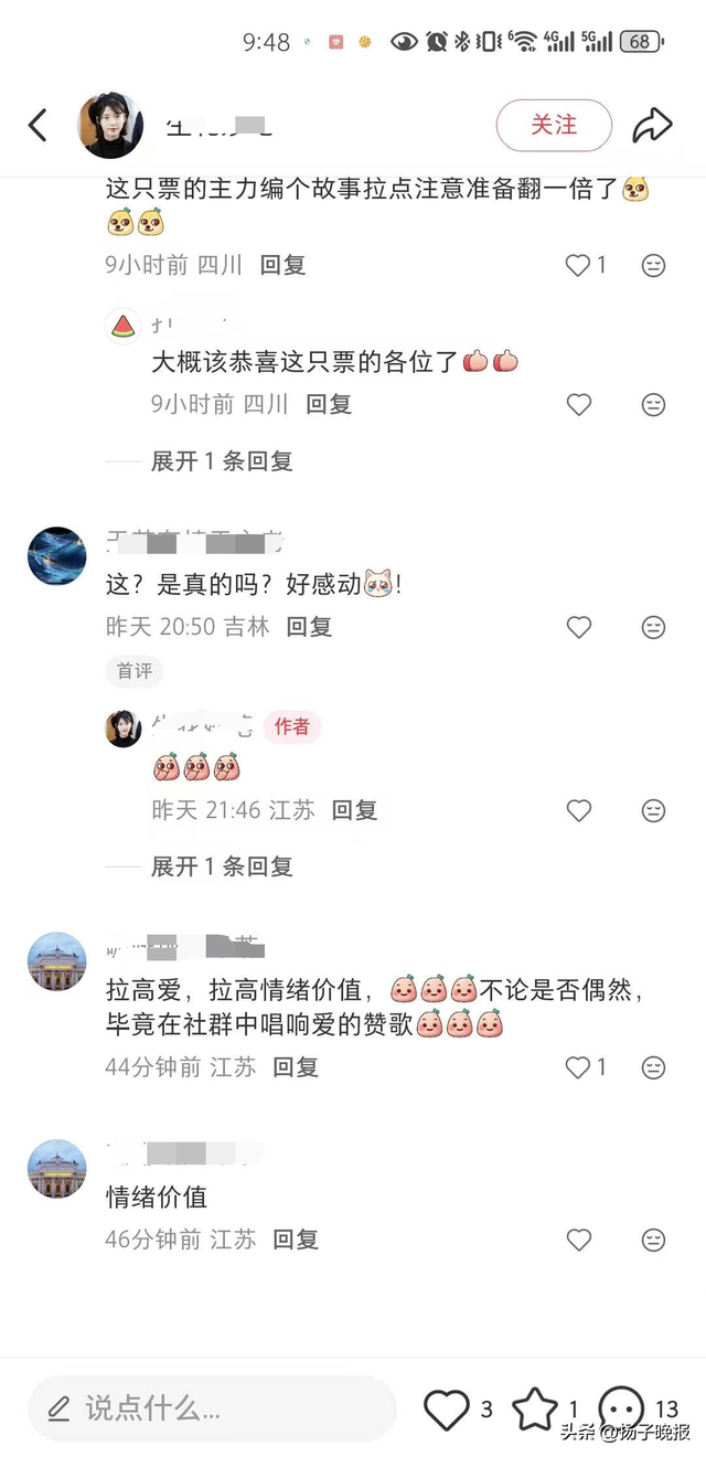 网友跟帖“拉高爱”“拉高情绪价值”