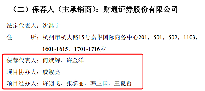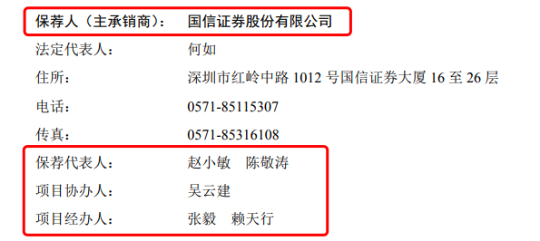 新澳股份IPO保荐团队(截图自新澳股份招股书):