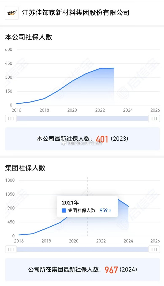 7 、公司的社保情况也有意思,IPO说明书显示,公司员工从1264人增至1692人,缴纳社保的人数为1050 人到1528 人。但通过启信宝查到的公司在工商局自己申报的社保数据,2023 年只有 401 人,差距太大了,不知道是哪个出问题了。