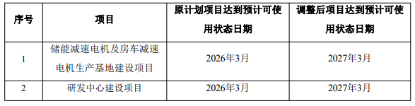 对于“储能减速电机及房车减速电机生产基地建设项目”延期原因,奕帆传动表示,通过资源整合与优化配置,公司有效提升了现有产能,目前已能够满足客户订单需求。出于谨慎使用募集资金、逐步推进项目布局的原则,公司根据实际订单情况合理规划产能建设,因此将“储能减速电机及房车减速电机生产基地建设项目”达到预计可使用状态日期延期至2027年3月。原计划项目达到预计可使用状态日期为2026年3月。