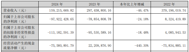 2022年、2023年、2024年,海伦钢琴营业收入分别为3.79亿元、2.97亿元、1.59亿元,归属于上市公司股东的净利润分别为832.44万元、-7885.48万元、-9792.24万元。