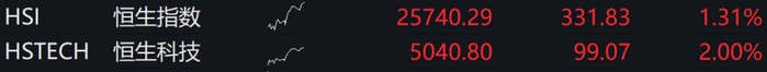 恒生指数高开1.31%,恒生科技指数涨2%。宁德时代涨近6%,哔哩哔哩涨逾4%,小鹏汽车涨逾3%,华虹半导体、快手、小米集团等涨逾2%。