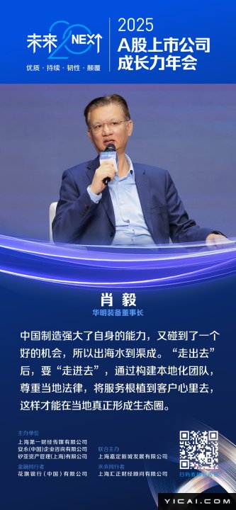 华明装备董事长肖毅:中国制造强大了自身的能力,又碰到了一个好的机会,所以出海水到渠成。“走出去”后,要“走进去”,通过构建本地化团队,尊重当地法律,将服务根植到客户心里去,这样才能在当地真正形成生态圈。