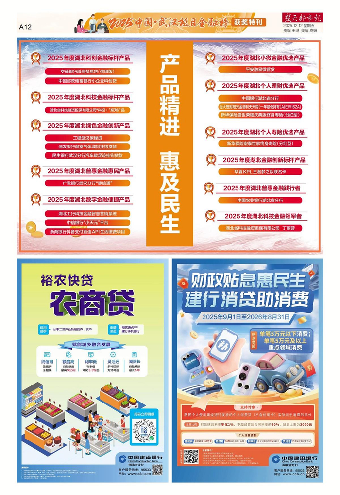 12月12日,2025中国·武汉极目金融榜榜单揭晓,华夏银行武汉分行荣获“2025科技金融年度大奖”“2025绿色金融年度大奖”“2025年度湖北金融创新标杆产品——华夏KPL王者梦之队联名卡”三项大奖。