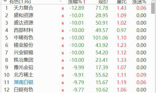国际贵金属市场的剧烈波动也传导到了A股,3月3日,通达信有色板块(880324)录得8个跌停,其中天力复合、盛和资源、西部资料、中稀有色、锡业股份、兴业银锡、株冶集团、豫光金铅等个股跌停,该板块跌幅在9%的个股有19只,无一只个股涨停。