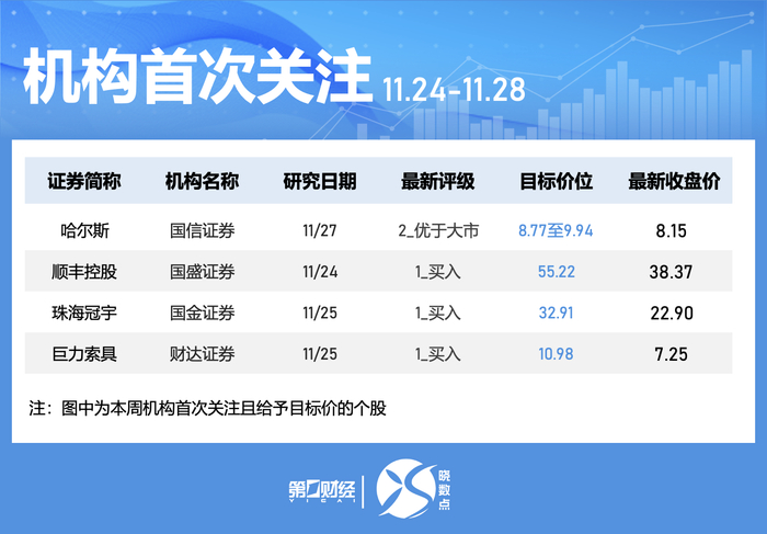 顺丰控股获国盛证券给予“买入”评级,目标价55.22元,该股最新收盘价为38.37元;