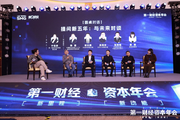 在“提问新五年:与未来对谈”圆桌对话中,第一财经科技频道副主编宁佳彦围绕硬科技生态链的建设,与多位嘉宾就未来五年发展规划展开讨论。