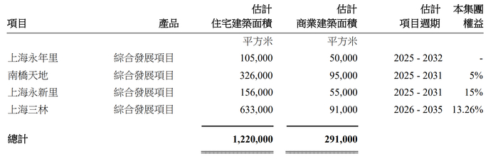 其中,2025年新获取的两个项目分别为上海黄浦区新天地社区内的高端住宅项目永新里、上海浦东新区的城中村改造项目上海三林,瑞安房地产分别拥有15%、13.26%的实际权益;永年里项目则是为永业集团提供管理服务的纯轻资产合作项目。