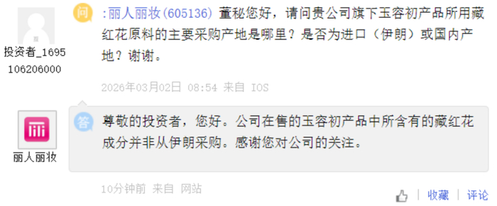 丽人丽妆 [605136] :公司在售的玉容初产品中所含有的藏红花成分并非从伊朗采购。