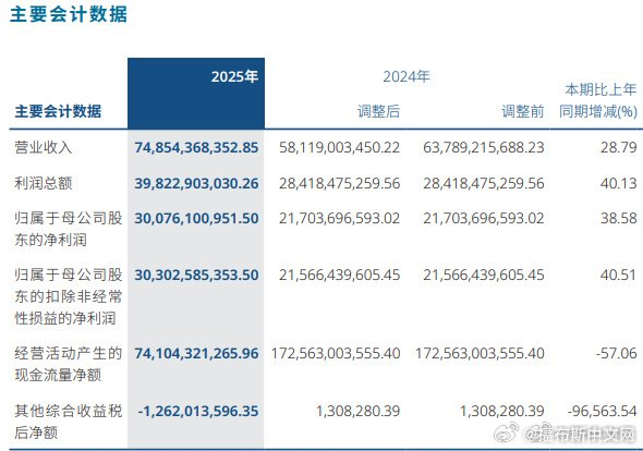 【#中信证券2025年净利润300.76亿元#】#中信证券去年净利增38%# 中信证券全年净利润突破300亿元,为历史首次。3月26日晚间,中信证券股份有限公司(下称“中信证券”,600030.SH,06030.HK)发布《2025年年度报告》显示,报告期内,公司全年实现营业收入748.54亿元,同比增长28.79%;实现归属于母公司股东净利润(下称“净利润”)300.76亿元,同比增长38.58%。截至2025年末,中信证券资产总额2.08万亿元,较年初增长21.70%;归属于母公司股东权益3199.30亿元,较年初增长9.15%。