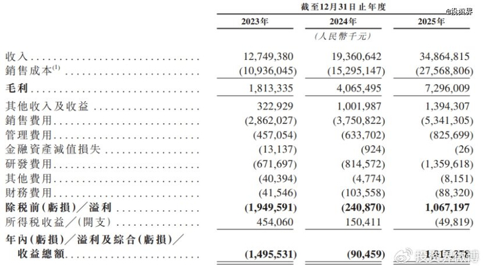 凭借于此,岚图汽车的业绩也水涨船高。招股书显示,岚图汽车在2023年、2024年及2025年,分别实现收入127.49亿元、193.60亿元及人民币348.65亿元。相对应的,2023年岚图汽车净亏损14.96亿元,并于2025年转亏为盈,净利润为10.17亿元。