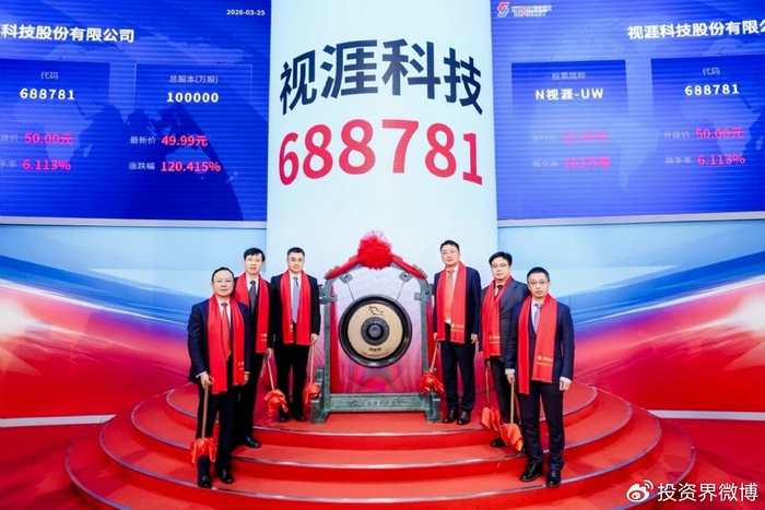 投资界-天天IPO消息,今日(3月25日)视涯科技正式登陆科创板,此次IPO发行价为22.68元/股,开盘大涨120%,市值突破500亿元。