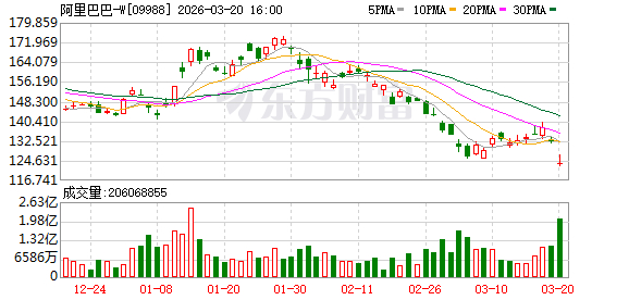 消息面上,阿里巴巴-W日前发布2025年第四季度业绩公告,实现收入2848.43亿元,同比增长2%,剔除已处置业务后增长9%,利润端相对承压,净利润156.31亿元,同比下降66%。