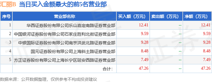 证券之星消息,沪深交易所2025年9月23日公布的交易公开信息显示,汇丽B(900939)因有价格涨跌幅限制的日收盘价格涨幅偏离值达到7%的前五只证券登上龙虎榜。此次是近5个交易日内第1次上榜。