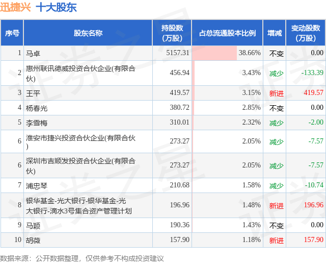 根据迅捷兴2025年中报公布的十大股东详情如下: