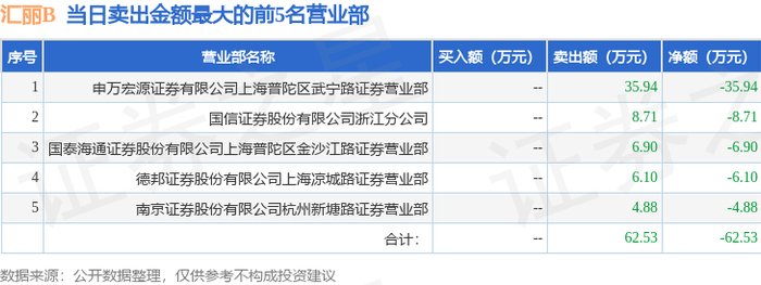 证券之星消息,沪深交易所2025年9月29日公布的交易公开信息显示,汇丽B(900939)因有价格涨跌幅限制的日收盘价格跌幅偏离值达到7%的前五只证券登上龙虎榜。此次是近5个交易日内第3次上榜。