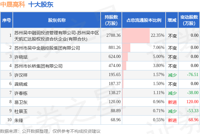 根据中晟高科2025年中报公布的十大股东详情如下: